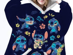 Unisex Cute Cartoon Oversize Flannel Hoodie Blanket