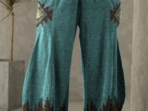 Women’s Western Style Geometric Print large Pocket Wide-leg Pants