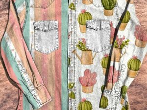 Cowboy Patterned Stripes Vintage Stripe Print Casual Shirt