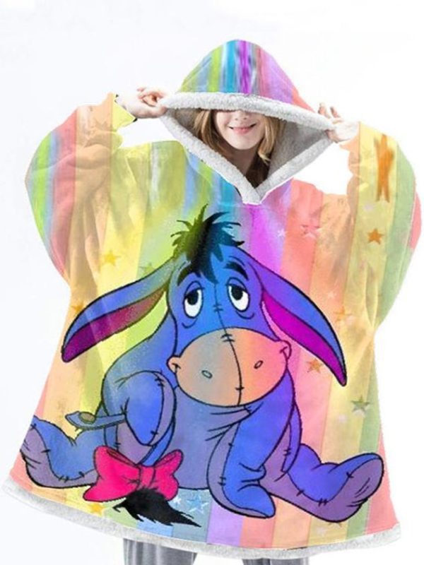 Unisex Cute Cartoon Oversize Flannel Hoodie Blanket